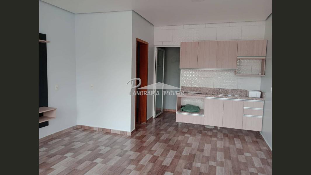 Apartamento estilo conjugadona parte de baixo possui sala e cozinha conjugadas, banheiro social e area de serviço, parte superior possui dois dormitorios, banheiro, possui estacionamento.