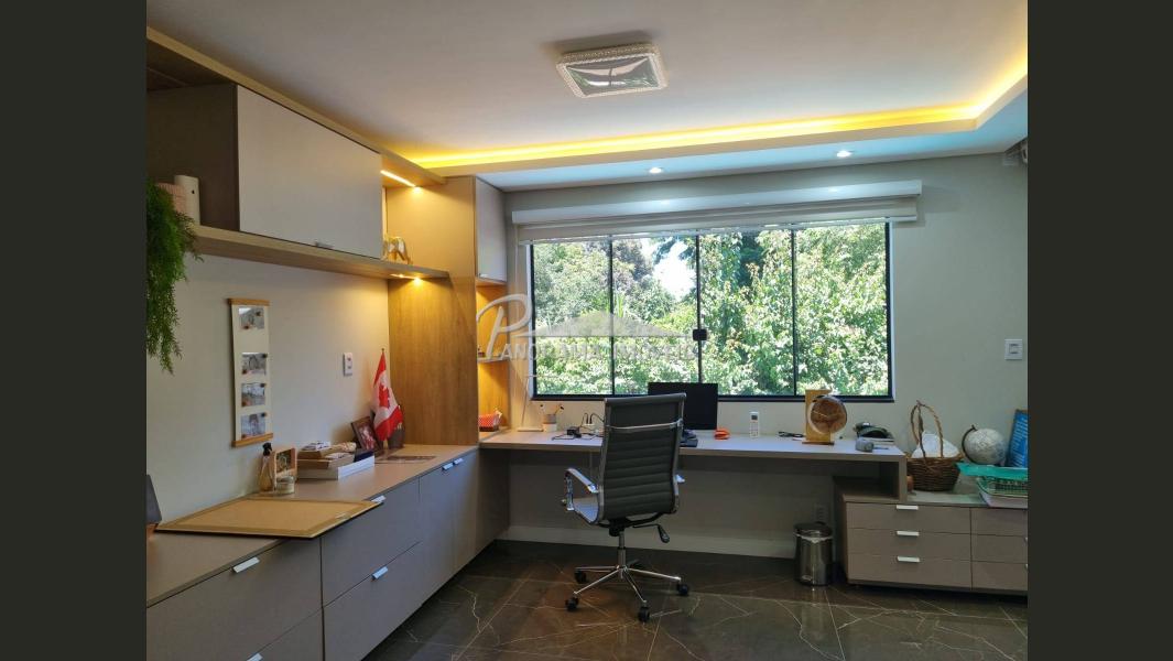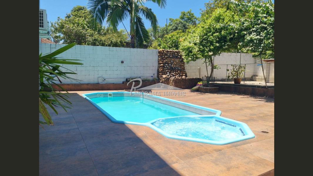 Casa de alvenaria com suíte mais 2 dormitórios, escritório, sala com lareira, sala jantar conjugada com cozinha, sala de TV, lavabo, área de serviço, garagem p/2 carros, piscina, canil. Terreno todo murado ACEITA CASA MENOR
