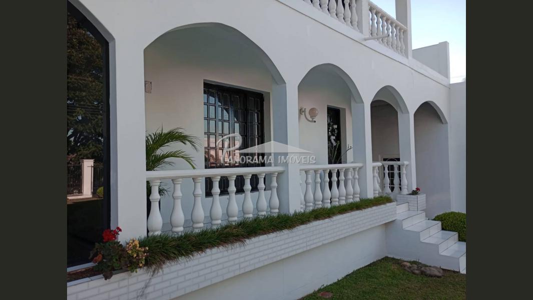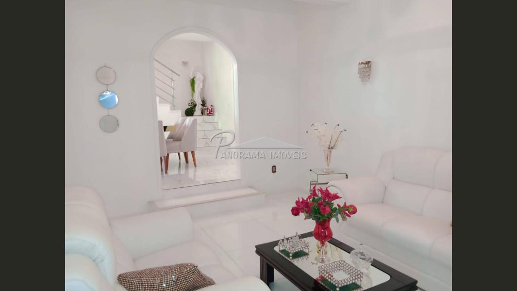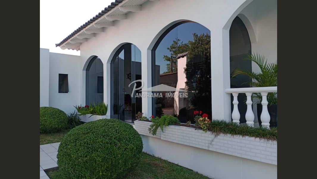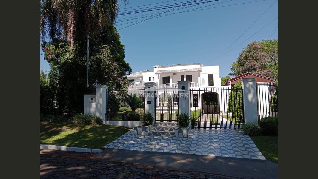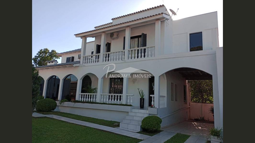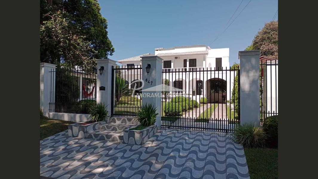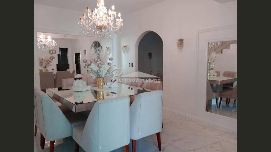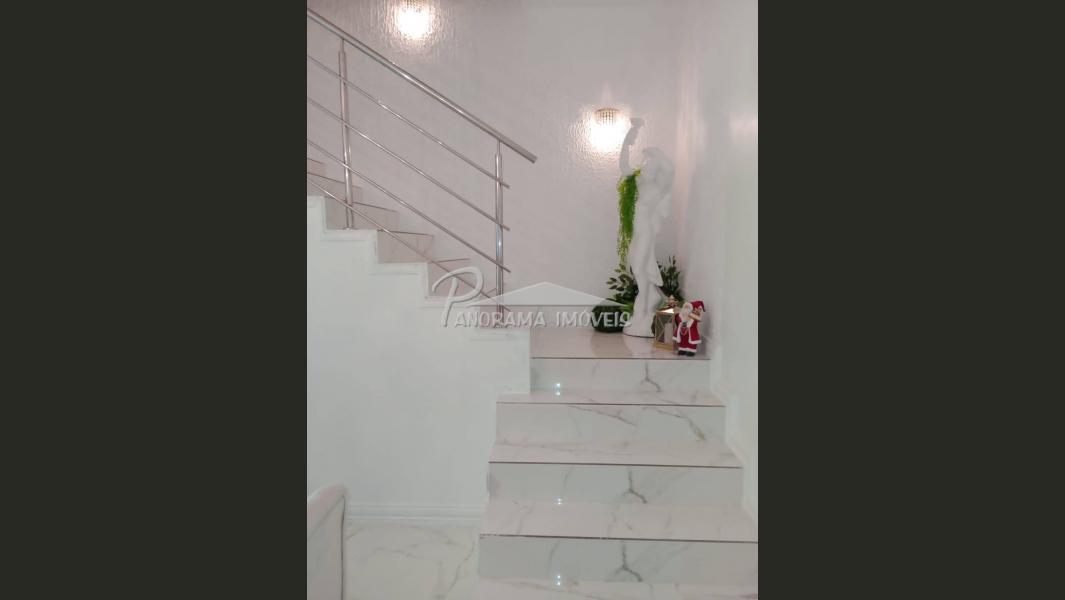 Linda casa de dois pisos com duas suítes, sendo uma com closet e sacada mais dois dormitórios, sala de circulação com lareira na parte superior.