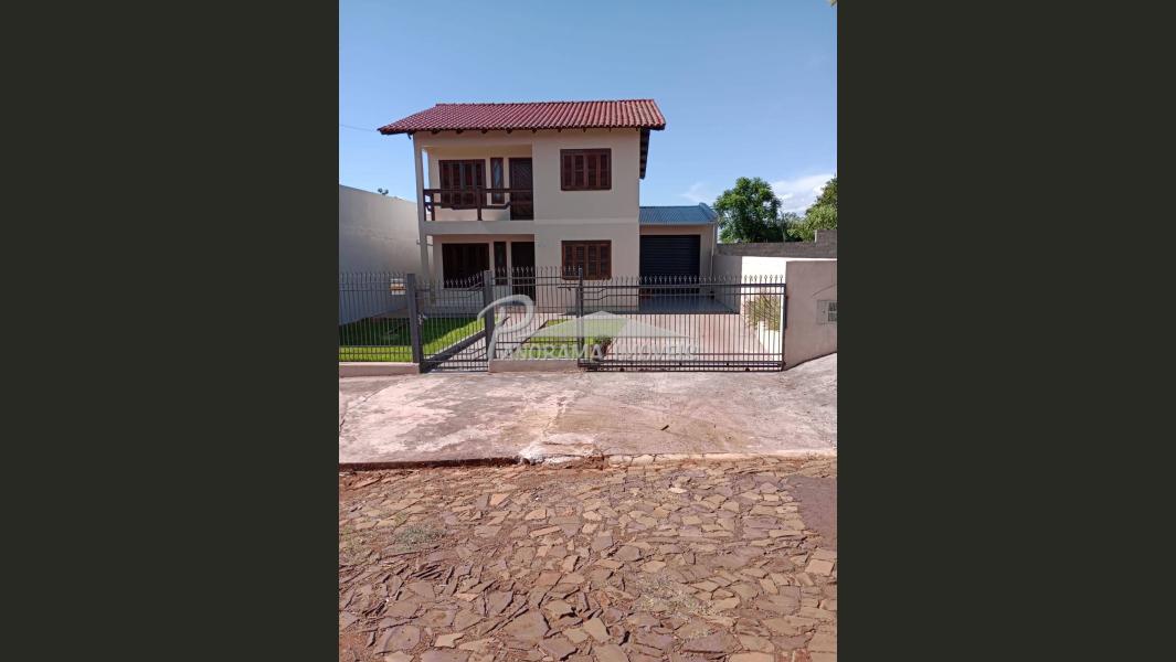 Casa de alvenaria com dois pisos sendo a parte superior com três dormitórios, sala com sacada, banheiro, e na parte térrea com sala, banheiro, sala de jantar, cozinha, escritório, garagem com churrasqueira. Pátio todo fechado.