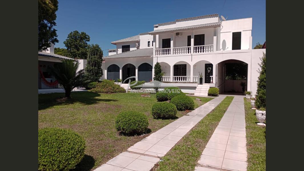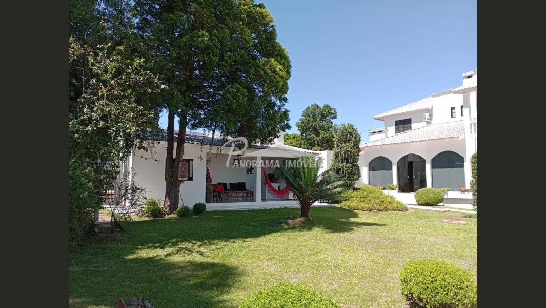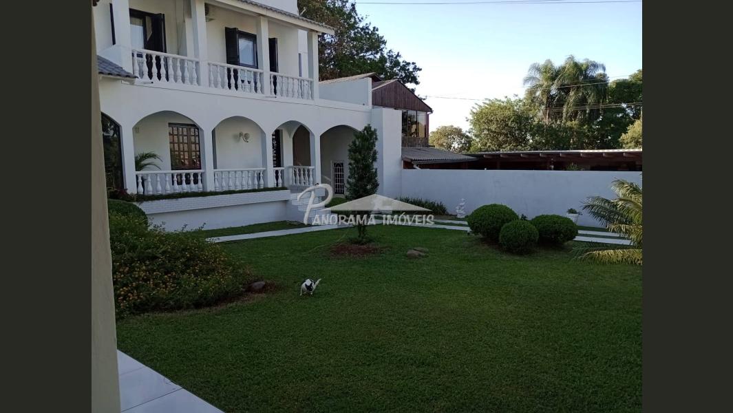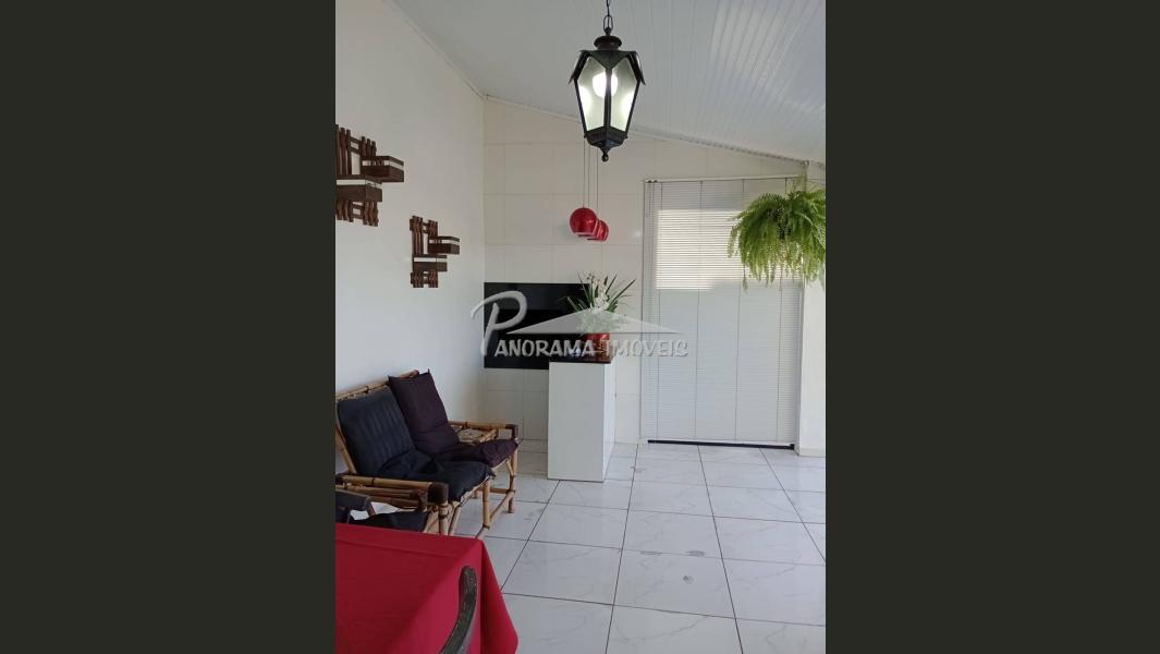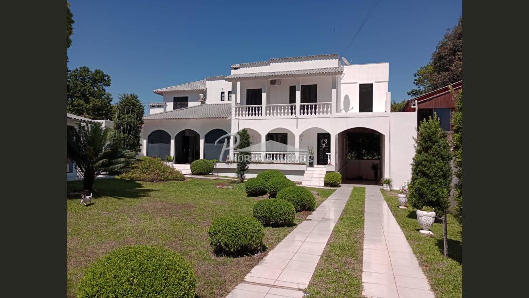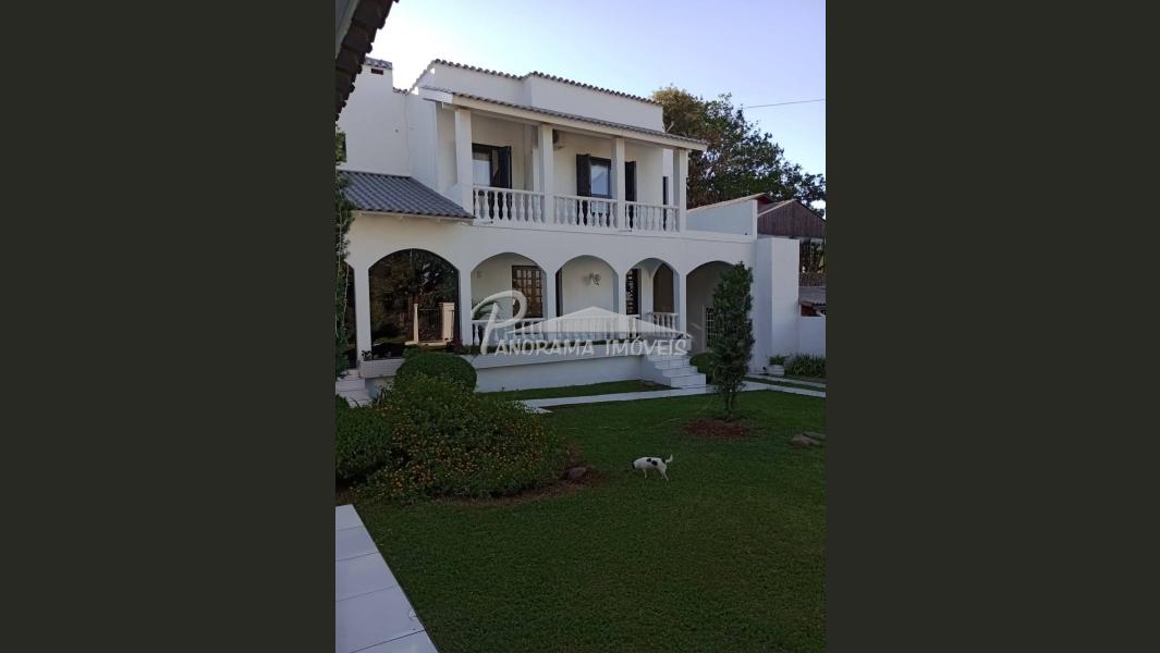 Linda casa de dois pisos com duas suítes, sendo uma com closet e sacada mais dois dormitórios, sala de circulação com lareira na parte superior.