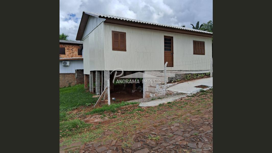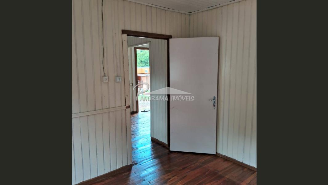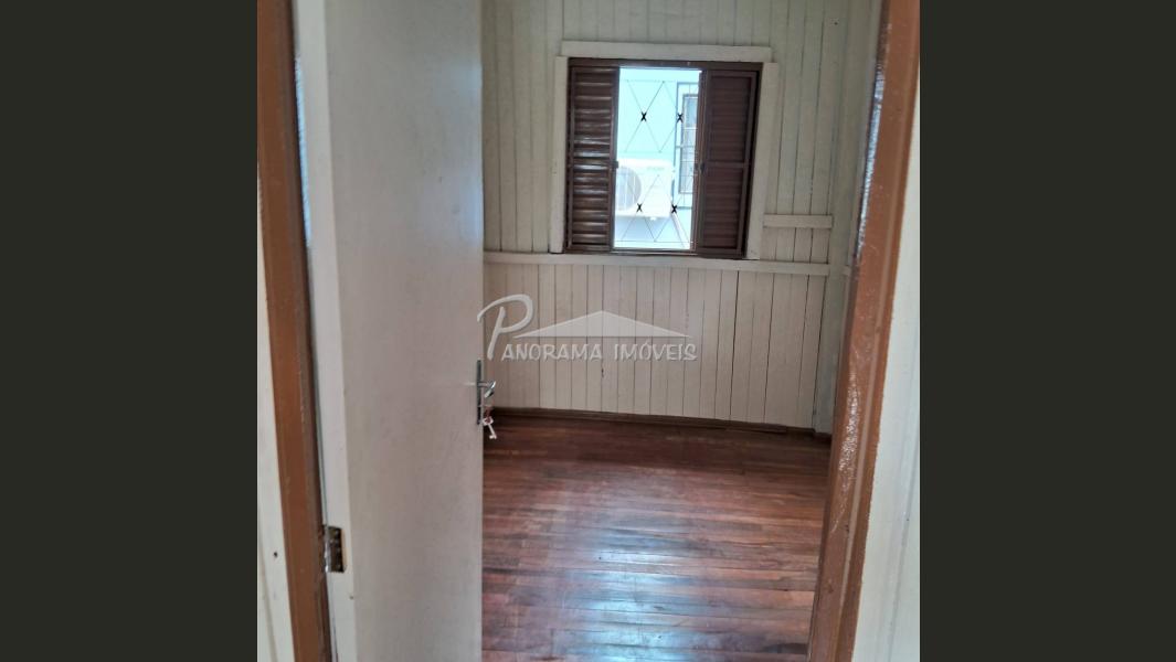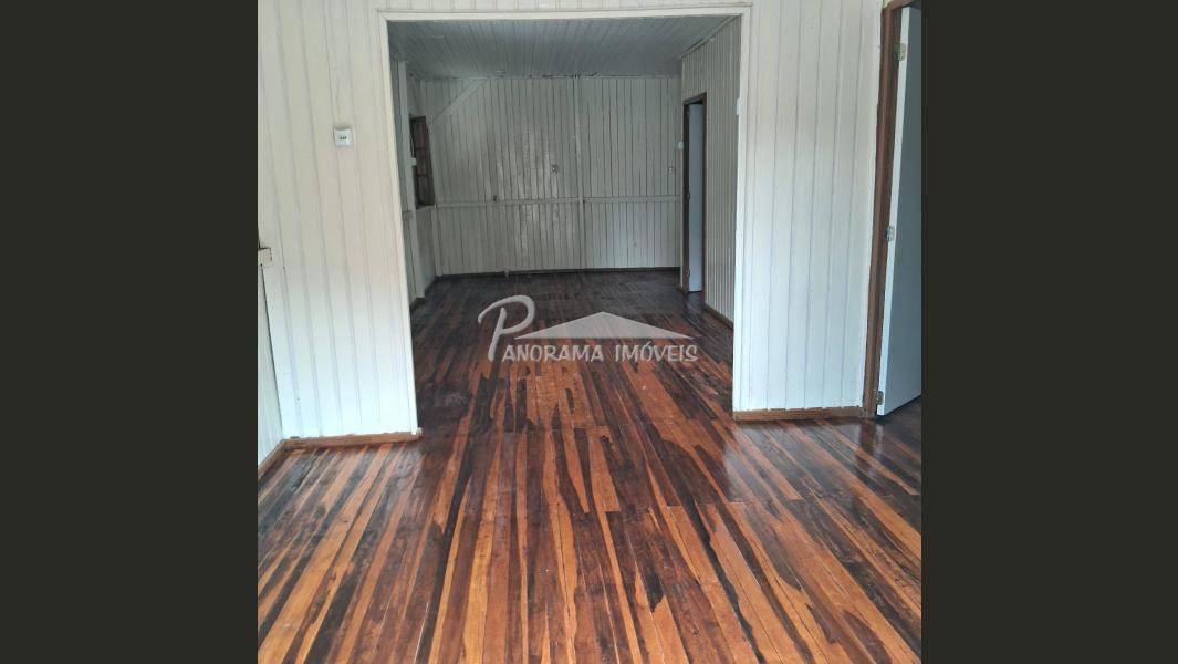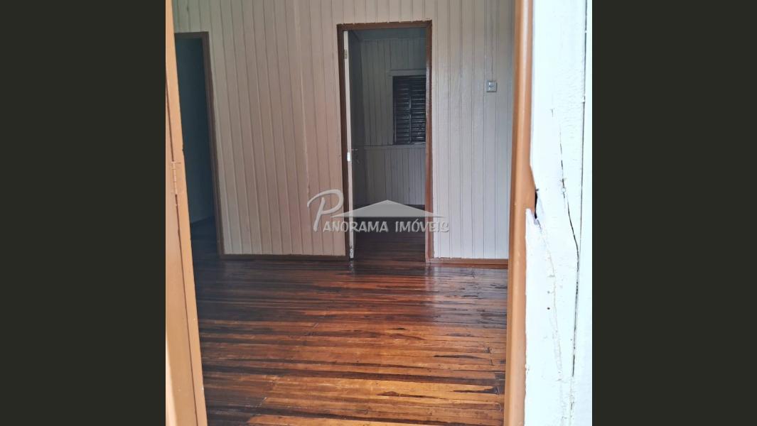 Casa de madeira com 3 dormitórios, sala, cozinha e banheiro. Terreno de esquina