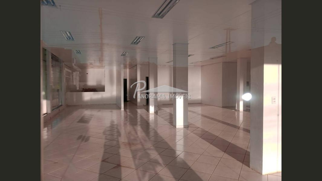 Sala comercial com aproximadamente 280m², possui dois banheiros, cozinha, garagem grande.